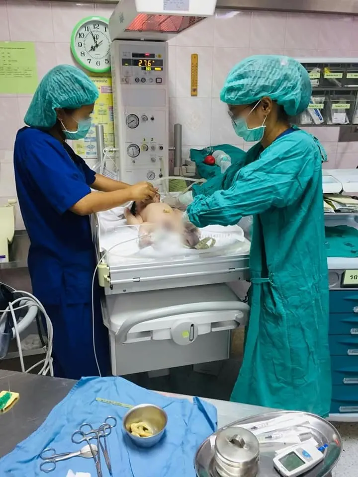 แต่ทารกน้อย ต้องเข้าดูแลในหออภิบาลทารกวิกฤติ ดูแลอย่างใกล้ชิดจากทีมกุมารแพทย์ ยังต้องประเมินอาการเป็นระยะๆ แต่เบื้องต้นประเมินอาการแล้วไม่น่ากังวลมากนัก