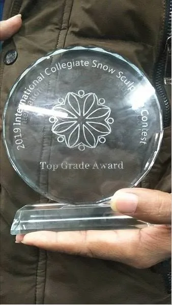 โดยคว้ารางวัลจากการแข่งขันการแกะสลักน้ำแข็งจากหิมะนานาชาติ ประจำปี 2562 ครั้งที่ 11 “The 11th International Collegiate Snow Sculpture Contest 2019” ณ เมืองฮาร์บิน สาธารณรัฐประชาชนจีน ระหว่างวันที่ 4 - 7 มกราคม 2562 จำนวน 3 รางวัลได้เเก่