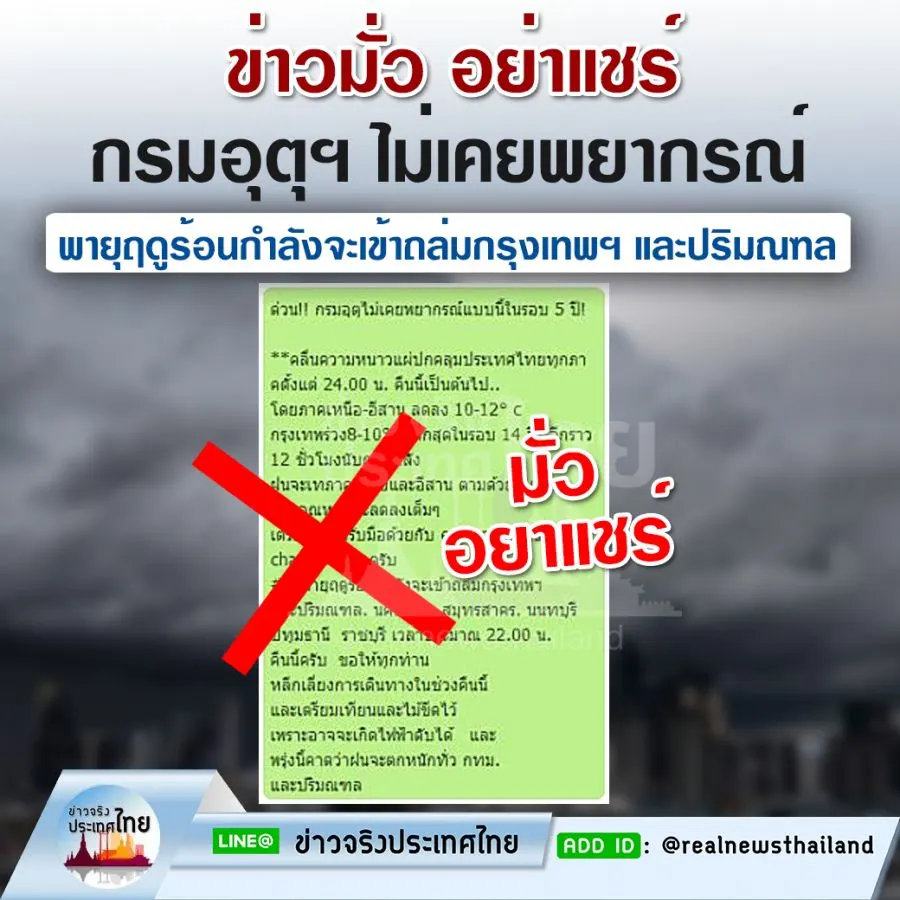 ข่าวมั่วอย่าแชร์ !! กรมอุตุนิยมวิทยา ไม่เคยพยากรณ์แบบนี้ในรอบ 5 ปี คลื่นความหนาวแผ่ปกคลุมประเทศไทยทุกภาคตั้งแต่ 24.00 น. คืนนี้เป็นต้นไป
