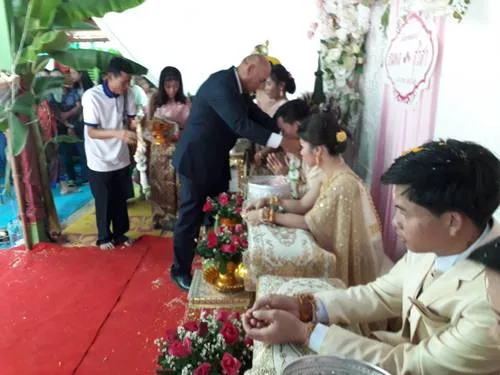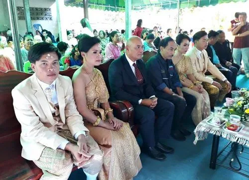 เมื่อเวลา 09.09 น.วันที่ 6 ม.ค. 2562 ที่ผ่านมา ร.ต.อ.นครินทร์ เกตุสิริ อดีต นอภ.ศีขรภูมิ จ.สุรินทร์ พร้อมด้วยกำนัน- ผู้ใหญ่บ้านได้เดินทางไปร่วมในงานพิธีมงคลสมรส ของนายธนพล มีศิริ และนาย ธนพร มีศิริ ซึ่งทั้งคู่เป็นแฝดพี่แฝดน้องกัน อายุ 27 ปี
