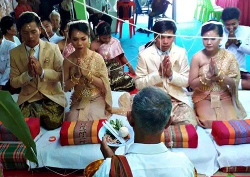 สำหรับเจ้าบ่าวคู่แฝดคือนาย ธนพล มีศิริ แฝดผู้พี่อายุ 27 ปี แฝดผู้น้องคือ นายธนพร มีศิริ อายุ 27 ปี เช่นกันส่วน นางสาว สุนิสา ไกรษี อายุ 26 ปี แต่งกับแฝดผู้พี่ และนางสาว เพชรทอง โจมบุญ แต่งกับแฝดผู้น้องอายุเพียง 26 ปี เท่ากัน