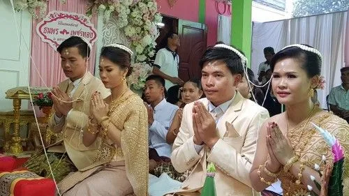 ทั้งหมดคบกันมาหลายปี โดยพบรักกันที่ทำงานเดียวกัน ของบริษัทเอกชนแห่งหนึ่ง ใน กทม.ก่อนจะพากันเก็บเงินเก็บทองมาแต่งงานกัน สำหรับสินสอดเงินสดคนละ 1 แสน 99 บาท ทองคำ คนละ 5 บาท ส่วนสาเหตุที่แต่งงานพร้อมกันเพื่อเป็นการประหยัดทั้งเงินและเวลา