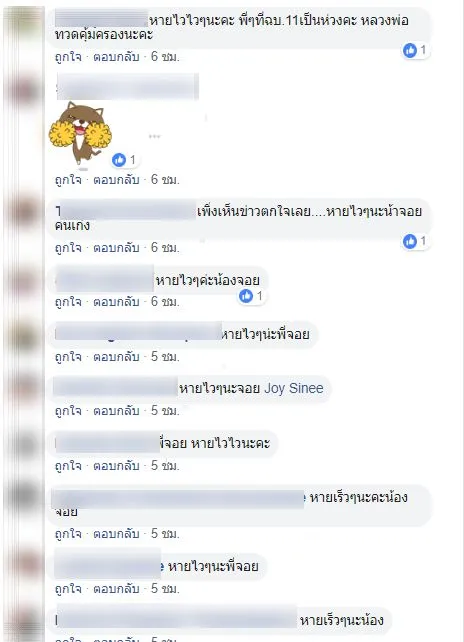 ล่าสุด หลังจากที่มีข่าวว่าผู้กองสินีนาถ ได้รับบาดเจ็บจากเหตุระเบิดครั้งนี้ก็มีผู้คนรวมถึงชาวเน็ตแสดงความห่วงใยให้เธอผ่านเฟซบุ๊กของเธออย่างต่อเนื่อง พร้อมทั้ง ขอพร ภาวนาให้เธอปลอดภัยและหายจากอาการบาดเจ็บเร็วที่สุด ไม่ว่าจะเป็นพระคุ้มครองพ่อคุ้มครอง ปลอดภัยนะคนเก่งหายไวๆนะ ขอให้ปลอดภัยหายไวๆครับ บ้างก็บอกว่าน้องจอยหายไวๆนะ