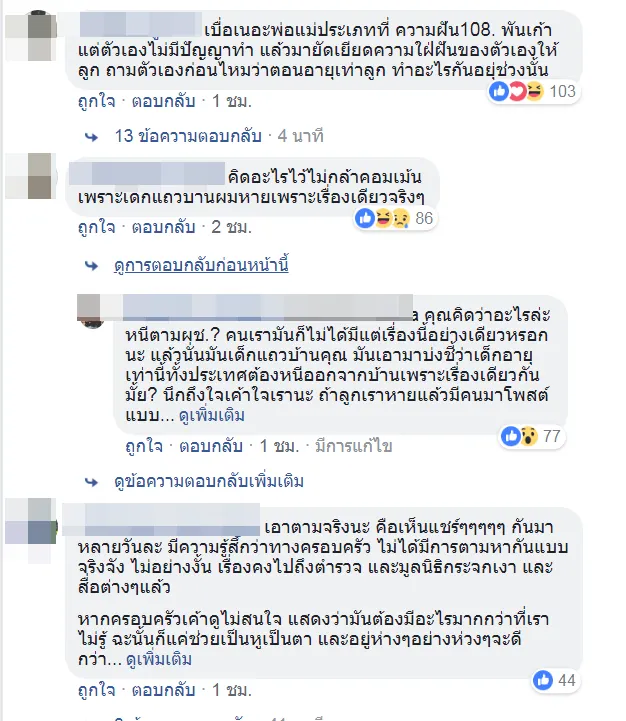 การที่น้องตัดสินใจแบบนี้ อาจจะเพราะน้องยังเด็ก น้องแค่อยากเป็นเหมือนเพื่อนคนอื่น ไปเที่ยวกับเพื่อน มีความสุข ไม่อยากถูกกดดัน อยากตัดสินใจอะไรเอง เป็นกำลังใจให้นะคะ เข้มแข็งผ่านปัญหาตรงนี้ไป เรื่องของครอบครัวคนนอกไม่ทราบทั้งหมด แต่ขอให้คุณพ่อคุณแม่เชื่อเถอะค่ะว่าน้องไม่ได้ต้องการอะไรมากจริงๆ ขอให้น้องกลับมาสู่อ้อมอกไวๆนะคะ"