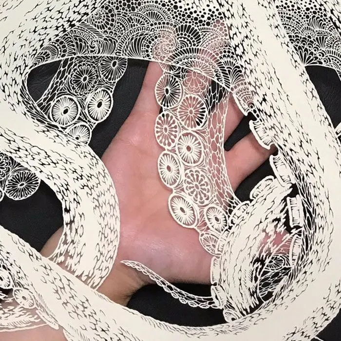 ศิลปินชาวญี่ปุ่น โชว์ฝีมือตัดกระดาษแผ่นเดียว เป็นรูปปลาหมึกยักษ์ สุดประณีต