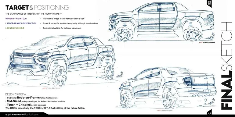 นี่คือ Mitsubishi Ute ต้นแบบรถกระบะสไตล์ดุดัน ผลงานการออกแบบโดย Ajay Parameswaran นักออกแบบจาก Chery Automobile Co. Ltd. ในประเทศจีน แค่เห็นก็ต้องยกนิ้วให้เพรระมันสุดยอดในความบึกบันและดุดันมากๆ เป็นอะไรที่โดนใจจริงๆ ครับ ด้านหน้าอันเป็นเอกลักษณ์ของ Mitsubishi ผสานเข้ากับเส้นสายเข้มแข็งและตัวถังที่ดูบึกบึนสุดๆ ทำไมมันสะใจอย่างนี้
