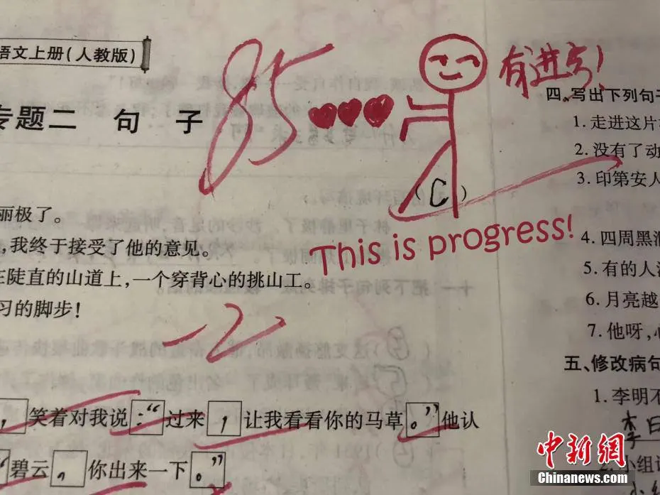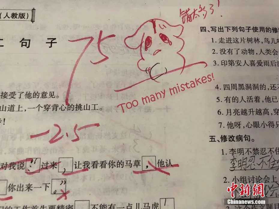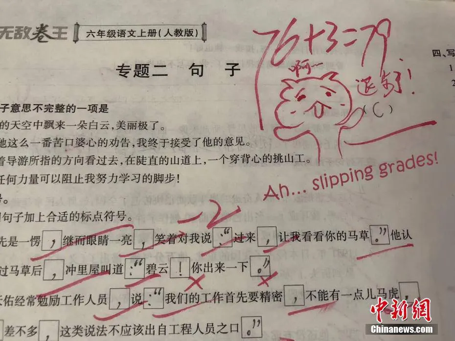 ชมภาพถ่ายบอกเล่าเรื่องราวดีๆ จากแดนมังกร เมื่อคุณครูโรงเรียนประถมคนหนึ่งในเมืองข่ายหลี่ของมณฑลกุ้ยโจว สร้างความประทับใจแก่ลูกศิษย์ด้วย “ตัวการ์ตูน” บนหน้ากระดาษข้อสอบ