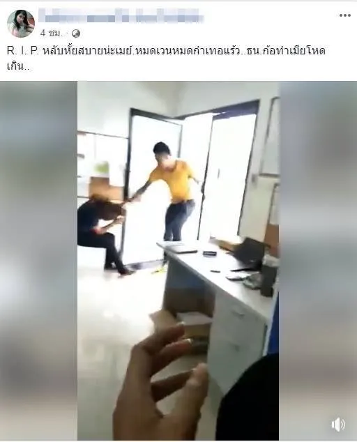 ต่อมาในโลกโซเชียล ได้โพสต์อาลัยถึงการเสียชีวิตของน้องเมย์ โดยมีเพื่อนได้โพสต์เหตุการณ์สุดสะเทือนใจ เหตุการณ์ที่สามีได้บุกมาที่ทำงานของน้องเมย์ ซึ่งเป็นโชว์รูมรถยนต์แห่งหนึ่ง และพยายามดึงตัวน้องเมย์ขึ้นรถ แต่น้องเมย์พยายามหนีและขอให้ช่วย จากนั้นสามีได้ตรงเข้าตบตี กระชากหัวน้องเมย์แล้วลากกลางที่ทำงาน พร้อมยังใช้เท้ากระทืบ ต่อหน้าต่อตาพนักงานคนอื่น อย่างไรก็ตาม เพื่อนของผู้ตายได้ระบุว่า เหตุการณ์ดังกล่าวเกิดขึ้นประมาณ 4 เดือนแล้ว โดยเพื่อนร่วมงานพยายามถ่ายคลิปไว้เป็นหลักฐานเพื่อแจ้งตำรวจ แต่พบว่า หลังจากนั้น ฝ่ายนั้นทั้งสองคนยังคงคบหาด้วยกันอีกครั้ง จนเกิดเหตุการณ์สลดขึ้น