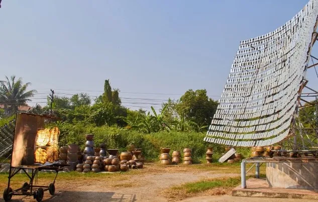 และเครื่องมือในการรวมพลังงานแสงอาทิตย์นั้นก็จะทำด้วยกระจกเงาขนาดเล็กจำนวน 100 บานมาติดตั้งกับบนโครงเหล็กขนาดใหญ่ที่สามารถปรับองศาได้แบบรอบทิศทาง ด้วยหลักการของรวมแสงเอาไปไว้ในจุดเดียวแล้วก็จะทำให้เกิดความร้อนสูงถึง 312 องศา จึงทำให้สามารถย่างไก่ให้สุกและพร้อมรับประทานได้โดยใช้เวลาเพียงแค่ 20 นาทีเท่านั้นเอง