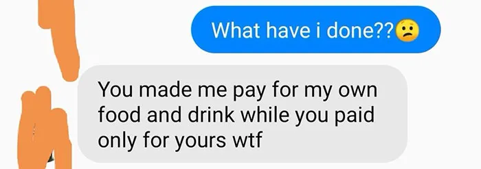 และนี่คือเรื่องราวของคู่เดทคู่หนึ่ง โดยสมาชิกเว็บไซต์ Reddit นามว่า CuteBananaMuffin ได้ตัดสินใจแชร์เรื่องราวของเขาที่เพิ่งพบเจอมาสดๆ ร้อนๆ โดยชายหนุ่มตัดสินใจเอ่ยปากชวนหญิงสาวอีกรอบ หลังจากที่ไปออกเดทด้วยกันครั้งแรก แต่หญิงสาวได้ตอบกลับไปว่า “หลังจากสิ่งที่คุณทำกับฉันครั้งที่แล้ว คุณหวังว่าฉันจะออกไปกับคุณอีกงั้นรึ ? ว้าว”