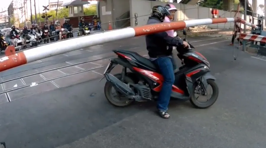รีบไปไหนกัน เพจดังแชร์คลิป สองล้อฝ่าป้ายกั้นรถไฟ ย้ำวินัยเริ่มได้จากตัวเรา (คลิป)