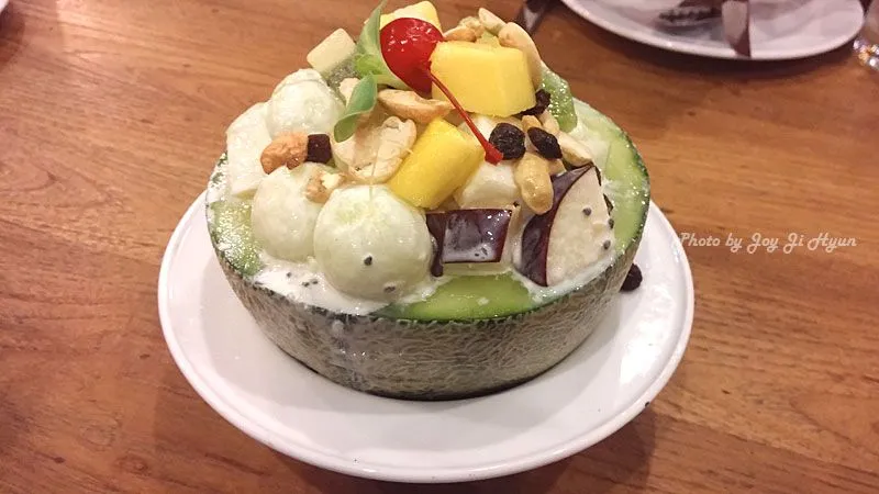 สำหรับเมนูอาหารต่างๆ มีมากมายหลายเมนูเลยค่ะ เมนูเด็ดๆ ที่ไม่ควรพลาดเลย ของร้านนี้ก็คือ เมนูที่แรก สลัดผลไม้ ที่เสริฟในลูกเมล่อนลูกโตกับผลไม้หลากชนิด ได้แก่ สับปะรด ลิ้นจี่ แอปเปิ้ลแดงเขียว เมล่อน แก้วมังกร กีวี ลูกพีซ ลูกเกด แอลมอน คลุกเคล้ากับครีมสลัด โรยด้วยวอลนัท รสชาติช่างนุ่มนวล ฟินสุดๆ