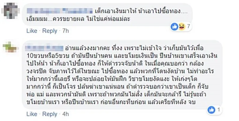 หลังจากเรื่องดังกล่าวเผยแพร่ออกไป ชาวเน็ตก็ได้เข้ามาวิพากษ์วิจารณ์กันอย่างหนัก หลายคนไม่เข้าใจว่าทำไมเจ้าหน้าที่ตำรวจถึงไม่ลงมือจัดการเรื่องนี้ เพราะแม้ว่าเด็กผู้ก่อเหตุจะเป็นเยาวชน แต่ครอบครัวเด็ก พ่อแม่ผู้ปกครองก็ควรได้รับความผิดเรื่องนี้ และน้าของเด็กก็ควรถูกจับกุมเช่นกัน เพราะรับเงินจากหลานไปซื้อทองมาแล้ว ไม่ต่างจากรับของโจร นอกจากนี้แล้ว ชาวเน็ตยังตั้งคำถามอีกว่า เด็กอายุขนาดนี้ยังมีนิสัยพฤติกรรมเช่นนี้ แถมพ่อแม่ไม่ห้ามปราม ถ้าหากโตขึ้น อาจเป็นภัยสังคมได้แน่ ๆ
