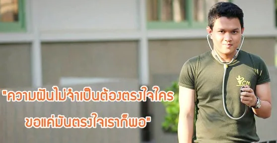 ผมคงไม่ขอให้จดจำผมว่าเป็นใครหรอกครับ ผมหวังแค่ สำหรับน้องที่พยายามจะทำตามความฝัน ถ้าน้องท้อหรือไม่มีกำลังใจ เรื่องของพี่อาจจะพอช่วยน้องได้บ้าง ขอบคุณครับ
