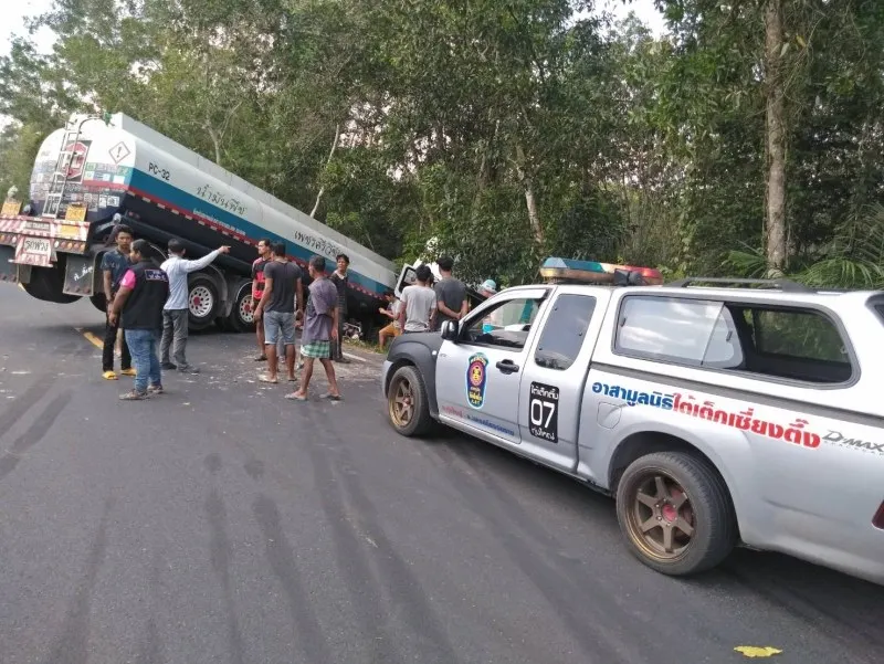(16 ม.ค.) ร.ต.อ.อนันต์ พานิชกุล รอง สว.สอบสวน สภ.ทุ่งใหญ่ จ.นครศรีธรรมราช เปิดเผยว่า เมื่อเย็นวานนี้(15 ม.ค.)ได้รับแจ้งมีเหตุรถบรรทุกน้ำมันพืชพุ่งลงข้างทางได้รับความเสียหาย มีคนเจ็บในที่เกิดเหตุ บนถนนสายทุ่งใหญ่ ลำทับ หมู่ 7 ต.กุแหระ อ.ทุ่งใหญ่ จ.นครศรีธรรมราช จึงพร้อมด้วยเจ้าหน้าที่หน่วยกู้ภัยไต้เต็กตึ้ง รีบรุดไปตรวจสอบในที่เกิดเหตุ