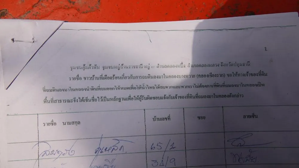 ทางด้านอำเภอคลองหลวง หลังจากที่ได้รับเรื่องร้องเรียนจากนายนายนพดล วิรางกูล ตัวแทนชาวหมู่บ้านราชธานี ที่ขอให้สอบสวนการถมที่ดินลงไปในคลองบางหวาย ทำให้น้ำระบายไม่สะดวก ประชาชนเกิดความเดือนร้อนเกี่ยวกับน้ำท่วมขัง เบื้องต้นได้เร่งรัดให้ทางเทศบาลเมืองคลองหลวง ขอรังวัดจากสำนักงานที่ดินจังหวัดปทุมธานี สาขาคลองหลวง และทางที่ดินฯได้ส่งหนังสือมาว่าจะดำเนินการตามที่ขอ แต่ยังไม่ได้กำหนดวันที่ ว่าจะให้เจ้าหน้าที่ทำการรังวัดบพื้นที่บริเวณที่ชาวบ้านได้ร้องเรียน เพื่อให้ทราบว่าพื้นที่จริงของเอกชนเท่าไร.