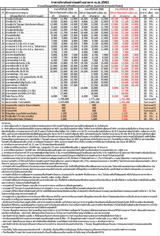 ราคาประเมินค่าก่อสร้างอาคาร พ.ศ. 2561 (ธันวาคม 2561)