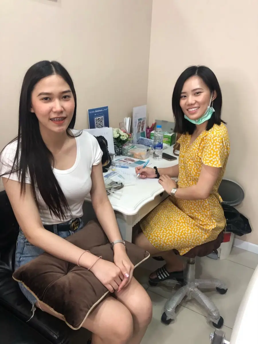 สำหรับสาวมิ้นท์ซึ่งสวยเป๊ะแบบธรรมชาติ ไม่เคยผ่านการศัลยกรรมใดๆ มาก่อน เรียกว่ามาเปิดซิงเข็มแรกกับบีโอ คลีนิคเลยก็ว่าได้ “หน้าหนูมีปัญหาคือ มีเหนียง รูขุมขนกว้าง มีจุดด่างดำ เป็นสิวผด ก็เลยอยากลองทำหน้าดูบ้าง เรียกว่าทำครั้งแรกค่ะไม่เคยทำมาก่อนเลย ตอนแรกกลัวมาก แต่ทำจริงๆ ไม่ได้น่ากลัวอย่างที่คิด จะเจ็บนิดหน่อยก็ตอนฉีดมาเด้ คุณหมอมือเบา พี่ๆ ทุกคนก็น่ารัก บริการดีมากค่ะ