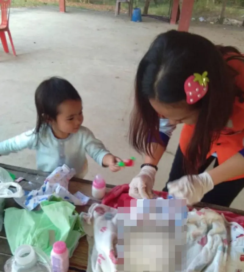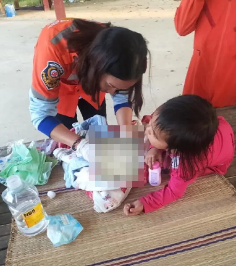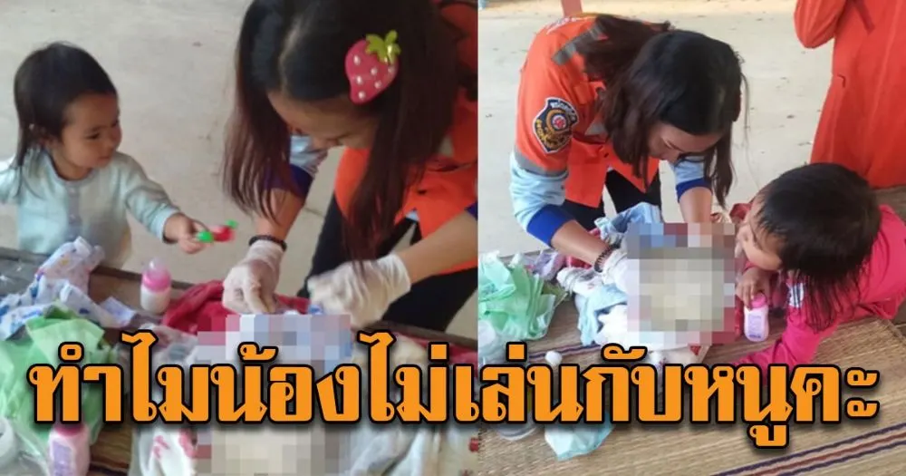 เห็นแล้วเศร้า! ทำไมน้องไม่เล่นกับหนู พี่สาววัย 2 ขวบ นั่งเฝ้ากู้ภัยแต่งให้น้องชาย แต่ไม่รู้ว่าน้องจะไม่ตื่นอีกแล้ว