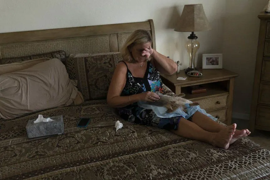 "มันทำใจบอกลายากมากเลย" แครี ปีเตอร์สันกล่าว ขณะวางดอกไม้ลงไปในหลุมศพเอเชีย สุนัขสุดที่รักของเธอ