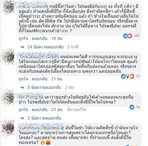 ซึ่งจากเหตุการณ์ที่เกิดขึ้น ต่อมาได้เรียกเสียงวิจารณ์แตกออกเป็นสองฝ่าย โดยฝ่ายหนึ่งได้ตำหนิจนท.ในลักษณะว่าไม่มีสิทธิที่จะถือวิสาสะเปิดกล่องพัสดุของลูกค้าโดยไม่ได้รับอนุญาตเช่นนี้ ในขณะเดียวกันก็ได้มีชาวเน็ตอีกจำนวนไม่น้อย ที่เข้ามาแสดงความเห็นใจเจ้าหน้าที่ เนื่องจากกติกา มีอยู่แล้ว ว่าห้ามส่งสิ่งมีชีวิต แต่ก็ยังฝืนส่ง เมื่อเห็นความผิดปกติก็เป็นธรรมดาที่ต้องเปิดดู แถมยังแพคมาไม่ดีจนกลายเป็นเรื่อง