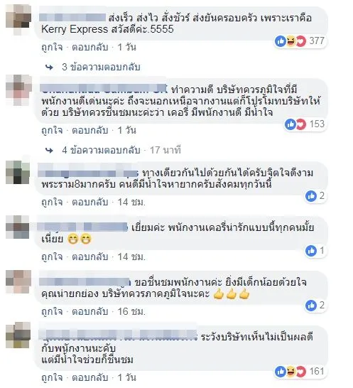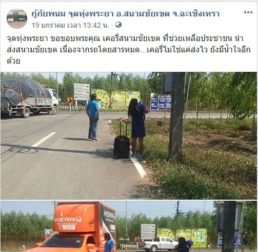 “จุดทุ่งพระยา ขอขอบพระคุณ เคอรี่สนามชัยเขต ที่ช่วยเหลือประชาชน นำส่งสนามชัยเขต เนื่องจากรถโดยสารหมด…เคอรี่ไม่ใช่แค่ส่งไว ยังมีน้ำใจอีกด้วย”