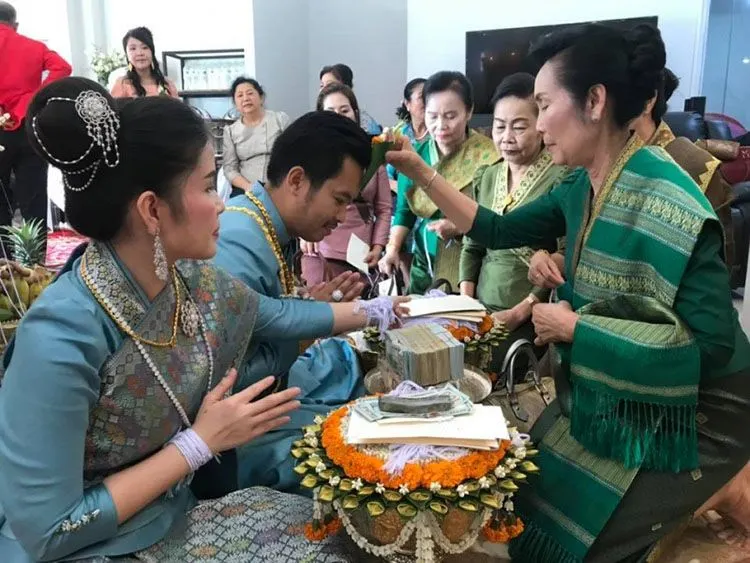 หอบเครื่องสินสอด ทองหมั้น ที่เต็มไปด้วย เครื่องประดับทองคำ ธนบัตรสกุลต่างๆ ทั้งที่เป็นเงินไทย เงินลาว รวมไปถึงเงินดอลลาร์ จำนวนหลายปึกด้วยกัน นำจัดใส่พาน ขึ้นรถหรูแห่ไปยังบ้านของเจ้าสาวผู้โชคดี ซึ่งบอกเลยว่า เห็นสินสอด ทองมั่น แล้วนั้น บอกเลยว่า สาวๆ หลายคนเห็นแล้วเป็นต้องอิจฉากันอย่างแน่นอน