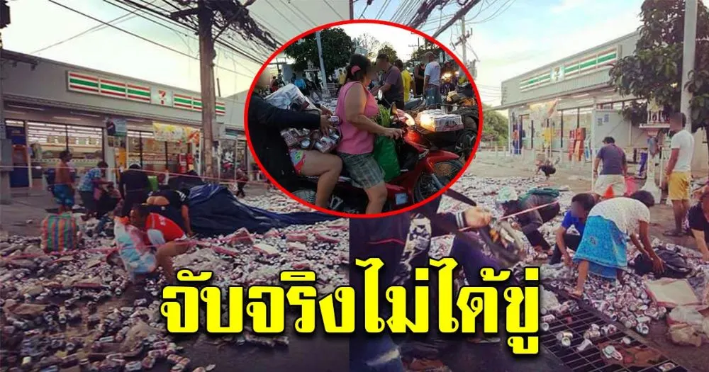จับจริง รวบแล้ว 4 ชาวบ้านจอมไว ฉกเบียร์กว่า 8 หมื่นกระป๋อง หลังรถบรรทุกคว่ำ