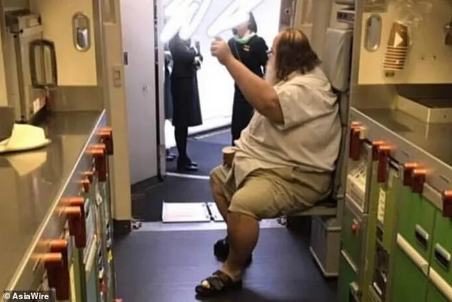 เหตุการณ์เกิดขึ้นระหว่างเที่ยวบินจากลอสแองเจลิส ไปยังสนามบินเถาหยวน ในไต้หวัน โดยสายการบิน EVA Air ซึ่งมีเฉพาะพนักงานต้อนรับหญิง โดยในเที่ยวบินนั้นมีผู้โดยสารชายชาวอเมริกันคนหนึ่ง ด้วยความที่เขานั่งรถเข็น และน้ำหนักตัวร่วม 200 กิโลกรัม เขาจึงขอที่นั่งแบบ 3 ที่ติดกันในชั้นประหยัด ซึ่งพนักงานบนเครื่องก็จัดให้ตามคำขอ เนื่องจากเห็นว่าในเที่ยวบินนั้นมีผู้โดยสารไม่เต็ม