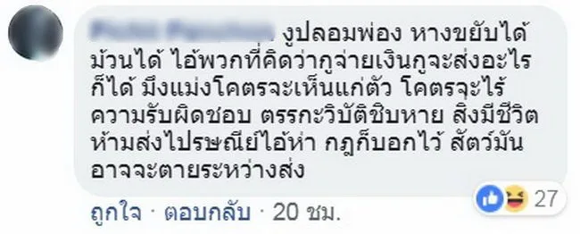 หลังจากมีการเผยแพร่คลิป ต่างก็มีผู้เข้ามาแสดงความคิดเห็นจำนวนมาก พร้อมทั้งตำหนิผู้ที่ส่งเจ้างูตัวนี้ รวมถึงสิ่งมีชีวิตอื่น ๆ