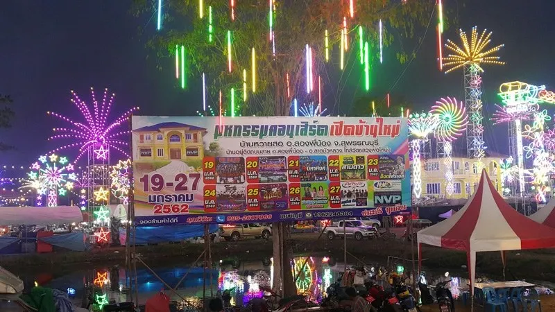 วันที่ 24 มกราคม 2562 ผู้สื่อข่าวรายงานว่า นายณัฐวุฒิ สว่างเมือง อายุ 40 ปี เสี่ยใหญ่เจ้าของกิจการเครื่องไฟ ได้จัดงานมหกรรมคอนเสิร์ตฉลองเปิดบ้านใหม่ ที่บ้านหมู่ 2 บ้านหวายสอ ต.เนินพระปรางค์ อ.สองพี่น้อง จ.สุพรรณบุรี บนเนื้อที่ 8 ไร่ มูลค่ากว่า 30 ล้านบาท พร้อมตกแต่งประดับไฟแสงสีระยะทางยาวกว่า 10 กิโลเมตร จัดฉายภาพยนตร์กลางแปลง 50 จอ ตลอดสองข้างทาง