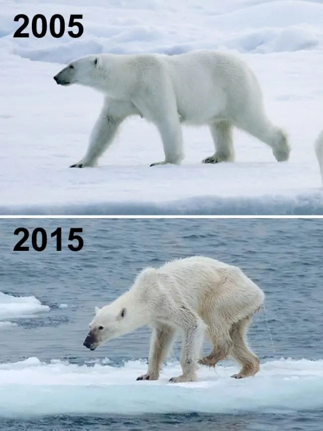 4 น้องหมีผอมเพราะน้ำแข็งมากขึ้นจนหาปลาไม่ได้