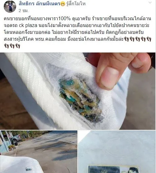 ที่นอนยาพารา ถึงว่าเป็นอีกหนึ่งสินค้าที่ขายดี เพราะว่านอนสบาย เป็นที่นอนเพื่อสุขภาพด้วย แต่ล่าสุด ทางด้านผู้ใช้เฟสบุ๊ก สิทธิกร ลักษมีเนตร ได้โพสต์เตือนภัยที่นอนยางพารา ที่ใช้งานมานานไม่ได้ผิดสังเกตอะไร พอเอาออกมาซัก ที่นอนขาดเห็นไส้ภายในไม่ใช่ยางพาราซะงั้น ได้โพสต์เตือนภัยพร้อมระบุว่า...