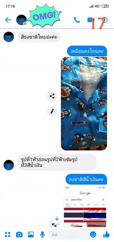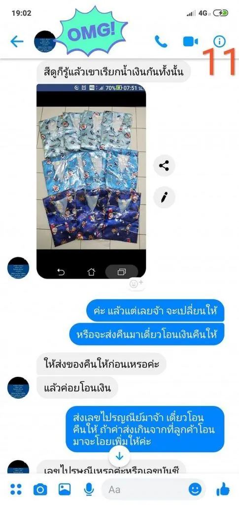 ล่าสุด ได้มีแม่ค้าขายชุดนอนออนไลน์คนหนึ่งได้ออมาโพสต์แชทที่ได้คุยกับลูกค้ารายหนึ่งที่ได้สั่งชุดนอนสีฟ้าเข้ม แต่ลูกค้าว่าที่ส่งมาใด้เป็นสีน้่ำเงินชัดๆ จนเถียงกันยาว เป็นยังไงนั้น ตามไปดูกันเลย
