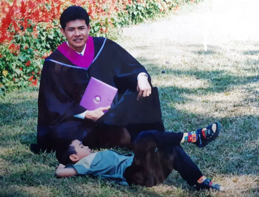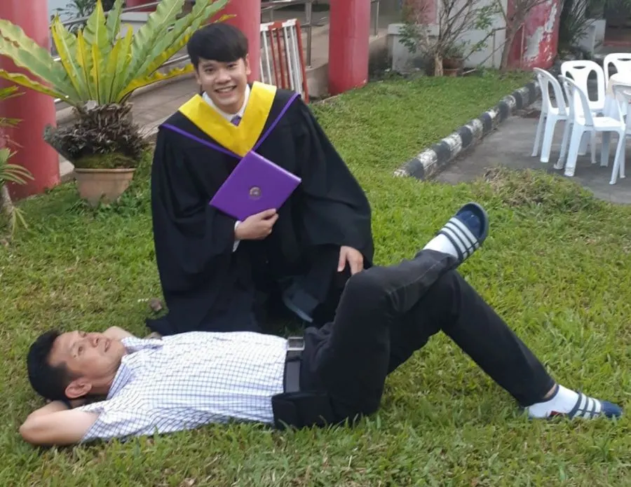 “การรอคอยสิ้นสุดลงแล้ว 16 ปีรูปแรก พ่อ ปริญญาเศรษฐศาสตรมหาบัณฑิต รูปสอง คีน ปริญญาวิทยาศาสตรบัณฑิต (วิทยาการคอมพิวเตอร์)”