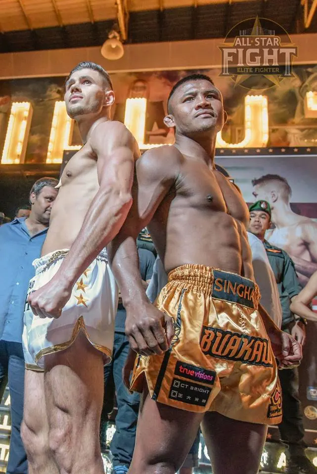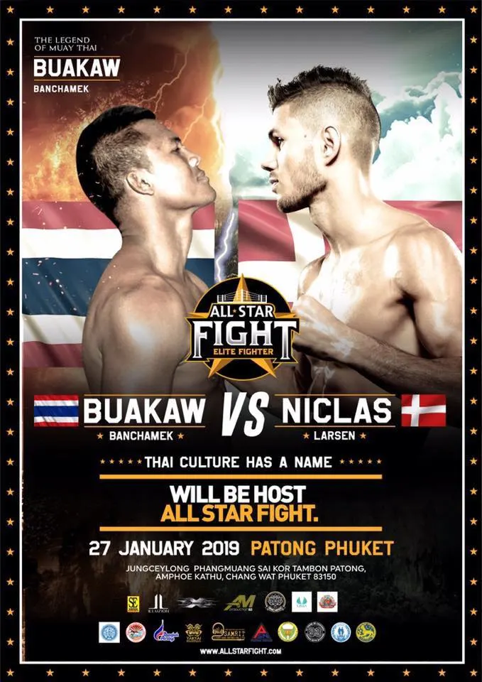 กำลังเป็นที่น่าสนใจในขณะนี้ สำหรับมวยไทย “ศึกออล สตาร์ ไฟต์” ครั้งที่ ที่จะมีขึ้นในวันนี้ อาทิตย์ที่ 27 มกราคม นี้ ที่สนามชั่วคราว ตรงข้าม อิลูชั่น ถนนบางลา จังหวัดภูเก็ต เข้าชมฟรี เริ่มชกคู่เเรกตั้งเเต่เวลา 19.00 น. ซึ่งไฮไลต์สำคัญคือ ยอดมวยคนดังขวัญใจชาวไทย บัวขาว บัญชาเมฆ จะขึ้นชกกับ นิคลาส ลาร์เซ่น กำปั้นชาวเดนมาร์ก โดยเมื่อวานนี้ได้มีการชั่งน้ำหนักอย่างเป็นทางการ ซึ่งทั้งคู่ก็ผ่านฉลุยไร้ปัญหา