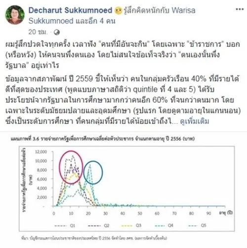 และแสดงกราฟวิเคราะห์ความยากจนและเหลื่อมล้ำในสังคมไทย โดยระบุผ่านทางเฟซบุ๊กส่วนตัว Decharut Sukkumnoed ว่า