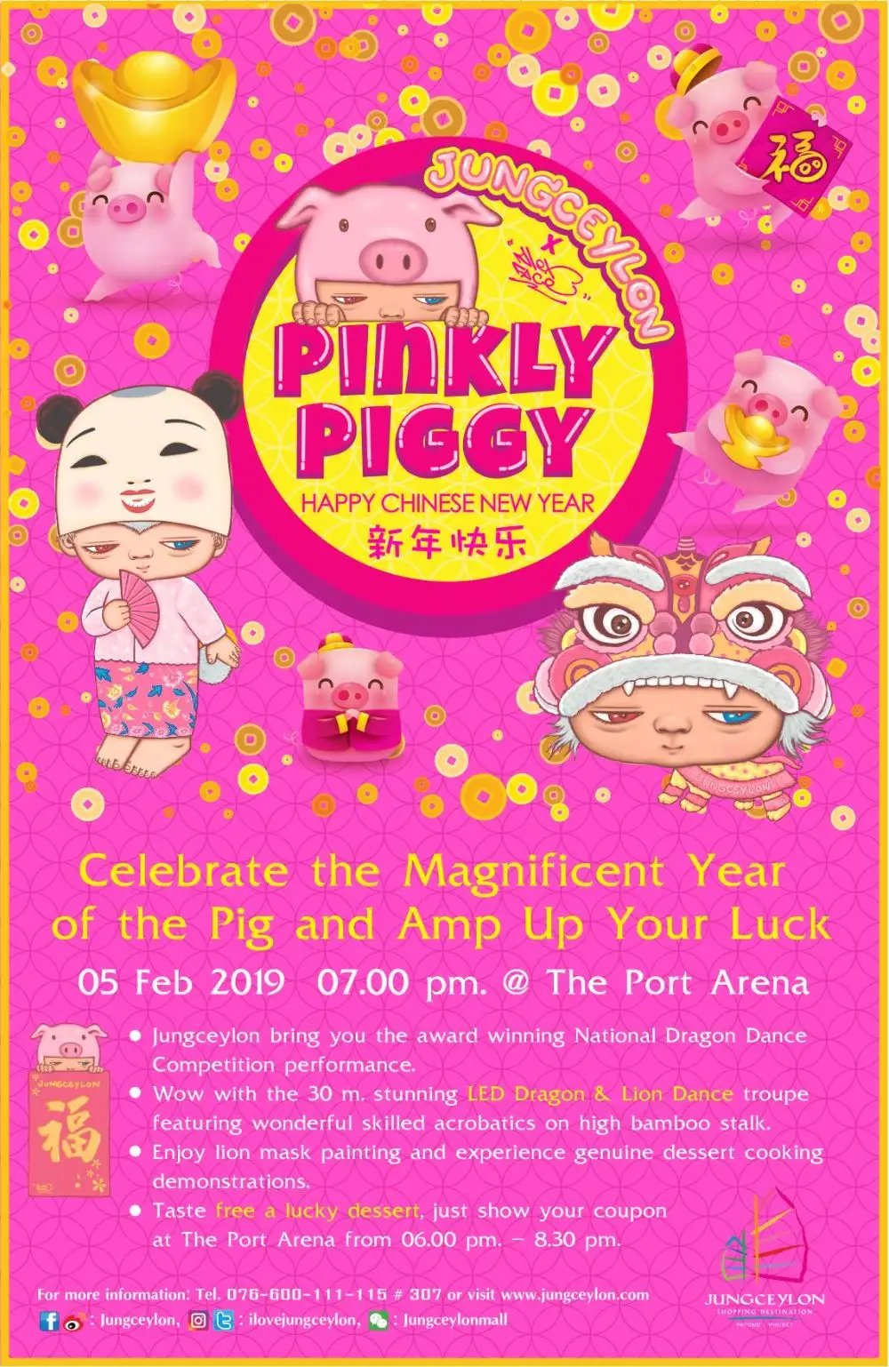 นายประวิช จรรยาสิทธิกุล ประธานเจ้าหน้าที่บริหาร ศูนย์การค้าจังซีลอน ป่าตอง ภูเก็ต กล่าวว่า ได้เตรียมกิจกรรมและโปรโมชั่นต้อนรับเทศกาลตรุษจีนที่กำลังจะมาถึงนี้อย่างยิ่งใหญ่ ในงาน “Happy Chinese New Year 2019” ภายใต้ชื่อ “Jungceylon Pinky Piggy”