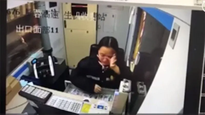 เช่นเดียวกับคลิปเหตุการณ์ต่อไปนี้ ที่ถูกบันทึกไว้ภายในห้องทำงานของ พนักงานเก็บค่าทางด่วนประเทศจีน พนักงานหญิงรายนี้แอบร้องไห้ออกมาอย่างสุดกลั้น หลังถูกคนขับรถต่อว่าขณะทำงาน