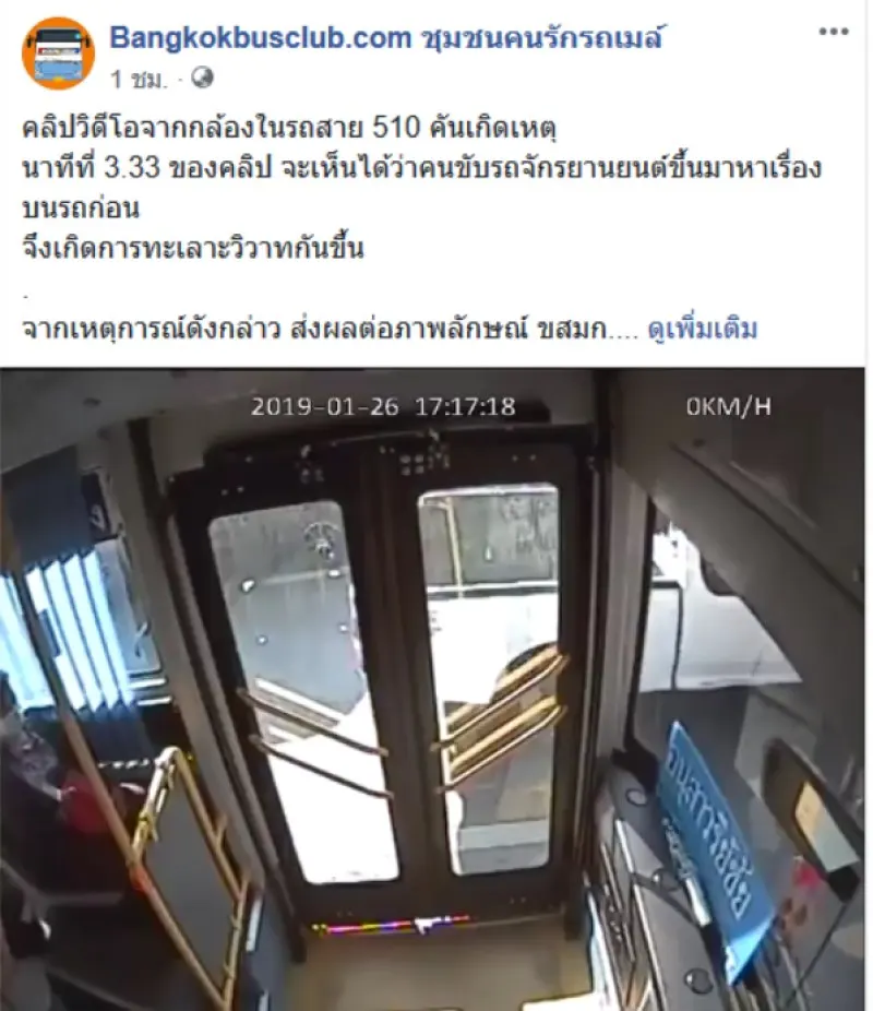 ต่อมาเพจดังกล่าวได้เผยอีกว่า คลิปวิดีโอจากกล้องในรถสาย 510 คันเกิดเหตุ นาทีที่ 3.33 ของคลิป จะเห็นได้ว่าคนขับรถจักรยานยนต์ขึ้นมาหาเรื่องบนรถก่อน จึงเกิดการทะเลาะวิวาทกันขึ้น จากเหตุการณ์ดังกล่าว ส่งผลต่อภาพลักษณ์ ขสมก. ล่าสุด ขสมก. ได้ตั้งคณะกรรมการสอบสวน และสั่งย้าย พขร. คันเกิดเหตุ ไปสาย 95ก ตั้งแต่วันที่ 28 ม.ค. 2562 เป็นต้นไป คลิปโดย #พนักงานท่านหนึ่ง
