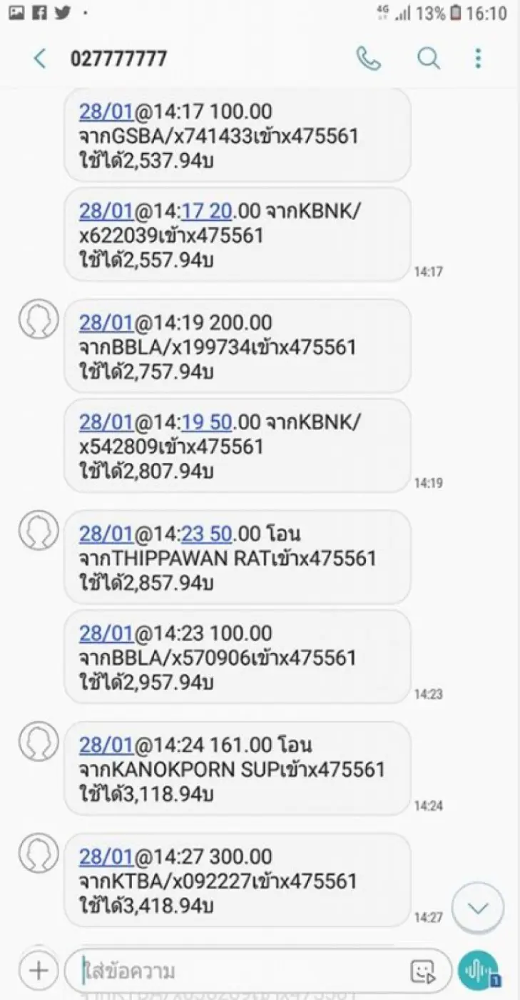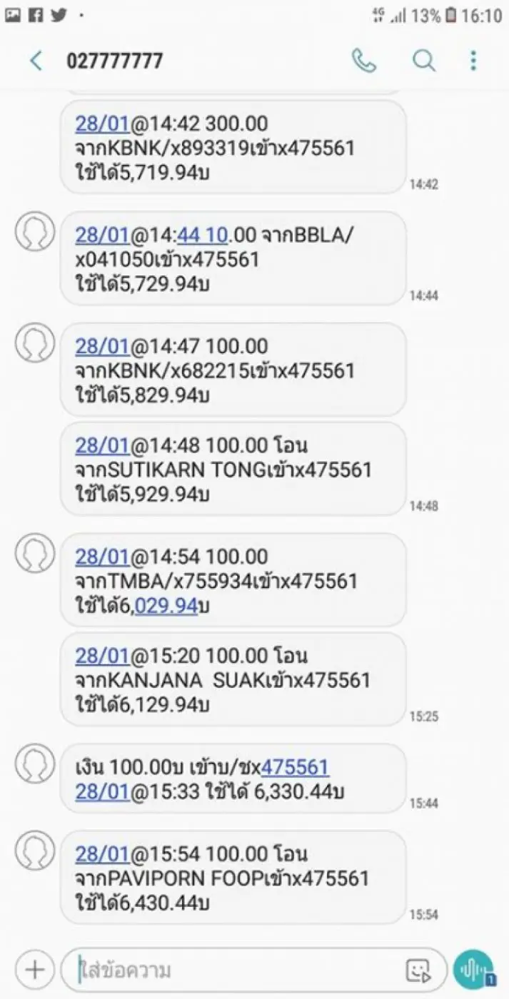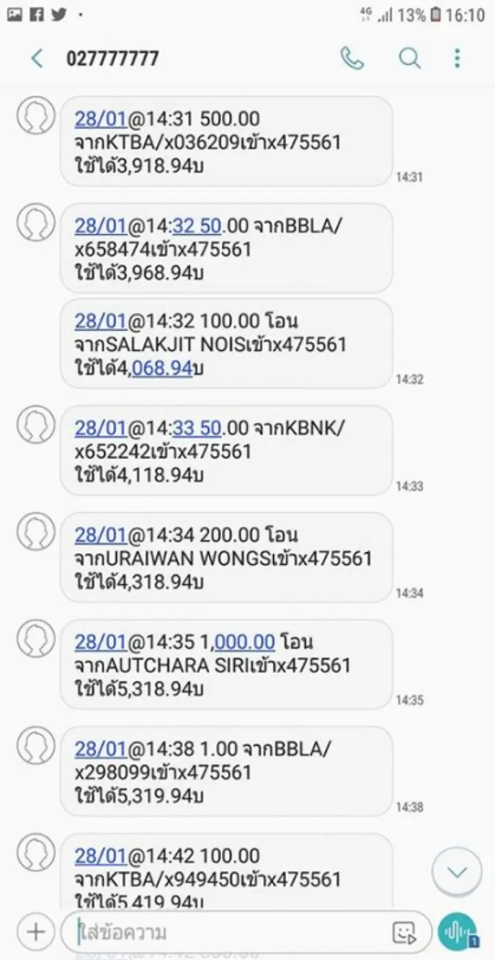 ยอดเงินที่โอนเข้า