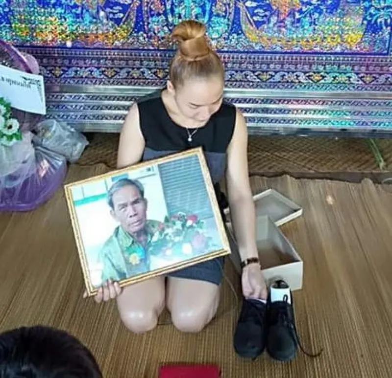ซึ่งรองเท้าคัทชู เชือกผูกที่บัวผันซื้อให้ก็ยังไม่ทันได้ใส่ ซึ่งพ่อแกบอกอยากได้เอาไว้ใส่ออกงาน พ่ออายุ 71 ย่าง 72 ทุกคนก็เสียใจเศร้ามาก จู่ๆพ่อก็ไป ตั้งศพบำเพ็ญกุศลที่บ้าน จะฌาปนกิจ 1 ก.พ.นี้ และ 2 ก.พ.จะมีหมอลำวงเล็กๆแนวย้อนยุคที่พ่อชอบมาแสดง”