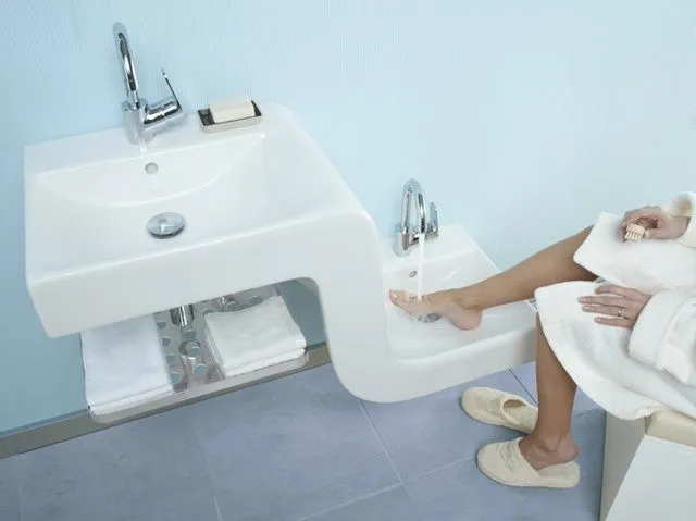 อ่างล้างหน้าสองชั้นที่สามารถใช้ประโยชน์ร่วมกันได้ทุกคนทุกเพศทุกวัย พ่อแม่ผู้ปกครองหรือผู้ใหญ่ก็สามารถใช้ล้างขาหรือล้างเท้าได้ หรือจะใช้เป็นอ่างล้างมือและล้างหน้าสำหรับเด็กๆ โดยเฉพาะก็ได้เช่นกัน