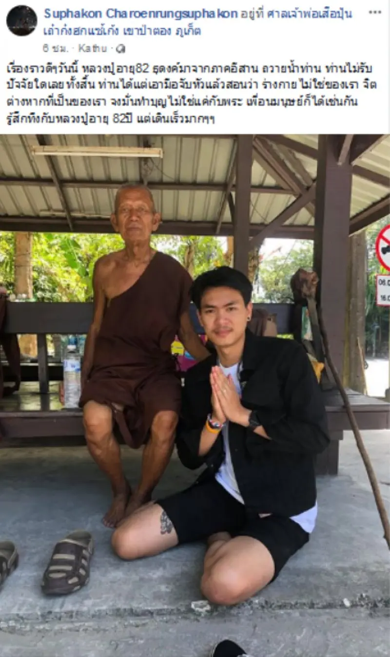 นอกจากนี้เขายังได้นำเรื่องของหลวงปู่ไปบอกเล่าในเพจ ขับรถแบบนี้ต้องประจาน ภูเก็ต เผื่อว่าใครพบเจอหลวงปู่จะได้ช่วยกันดูและท่านนั่นเอง