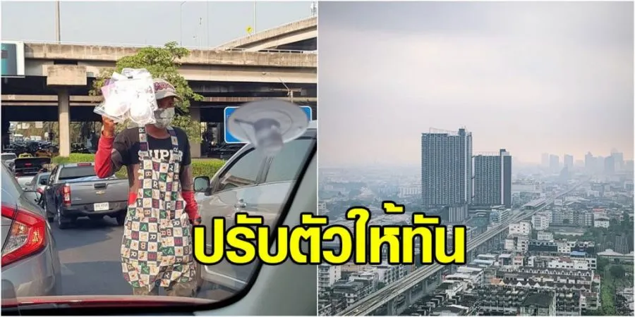 ปรับตัวได้ดี คนขายพวงมาลัย 4 แยก เปลี่ยนขายหน้ากากกันฝุ่นพิษ เข้ากับสถานการณ์กรุงเทพฯ