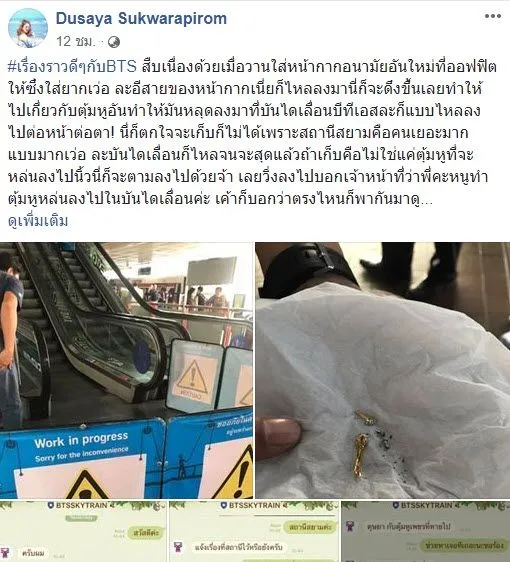สาวทำตุ้มหูเพชรหล่นไปในบันไดเลื่อน BTS แจ้งไปทางไลน์ BTS เจอแอดมินปั่นสุดฮา