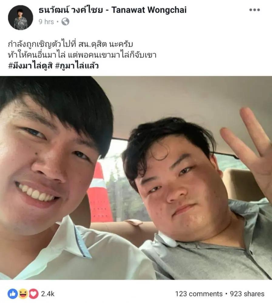 ซึ่ง ได้ถูก สน.ดุสิต เชิญตัวไปที่ สน. และเมื่อเวลา 21.00 น. วันที่ 2 ก.พ.ที่ สน.ดุสิต โดยได้แจ้งข้อหา จัดการชุมนุมโดยไม่แจ้งล่วงหน้า ตาม พรบ.การชุมนุมสาธารณะ กับ นายพริษฐ์ ชีวารักษ์ หรือ เพนกวิน และนายธนวัฒน์ วงค์ไชย