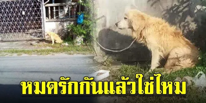 คนรักหมาน้ำตาซึม โกลเด้นนั่งเศร้า โดนผูกตากแดด ตากฝน ไม่มีใครเหลียวแล ผอมแห้ง หิวโซ