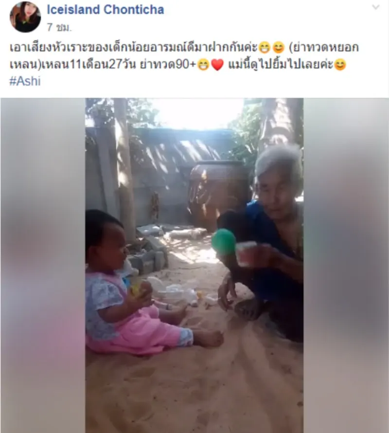 ถือเป็นอีกหนึ่งคลิปที่มีชาวเน็ตแชร์ส่งต่อกันเป็นวงกว้างอีกคลิปหนึ่งสำหรับคลิปของผู้ใช้เฟซบบุ๊ก Iceisland Chonticha ที่เธอนำมาโพสต์ในกลุ่ม HerKid รวมพลคนเห่อลูก กับคลิปของยายหลานเล่นลูกบอลด้วยกันอย่างสนุกสนาน ซึ่งคุณยายทวดก็ยิ้มและเล่นเป็นเพื่อนหลานอย่างลืมวัย