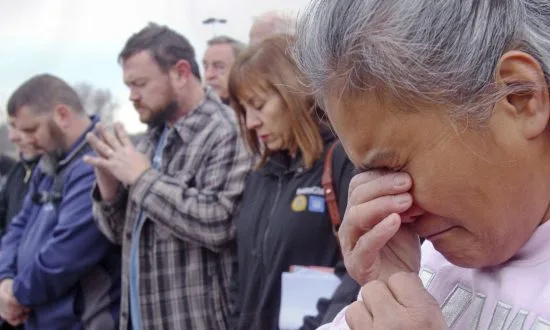 (แฟ้มภาพ Venus Walker, of Warren, Ohio and a GM employee with 12 years at the Lordstown plant, prays during a vigil outside the Lordstown GM plant, on Nov. 29, 2018. (William D. Lewis/The Vindicator via AP)